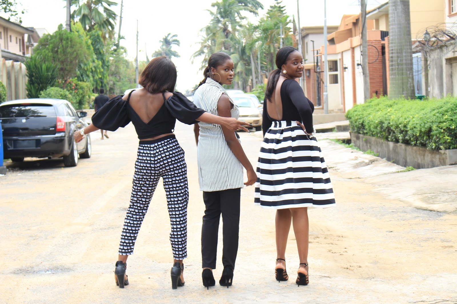 You may have noticed that, I wore my big sleeve black crop top, Unoma wears a long tuxedo jacket and Belinda wears a fitted backless long sleeve top. All of these three pieces are statement pieces so no one is going to stereotype you as a waiter or chorister.